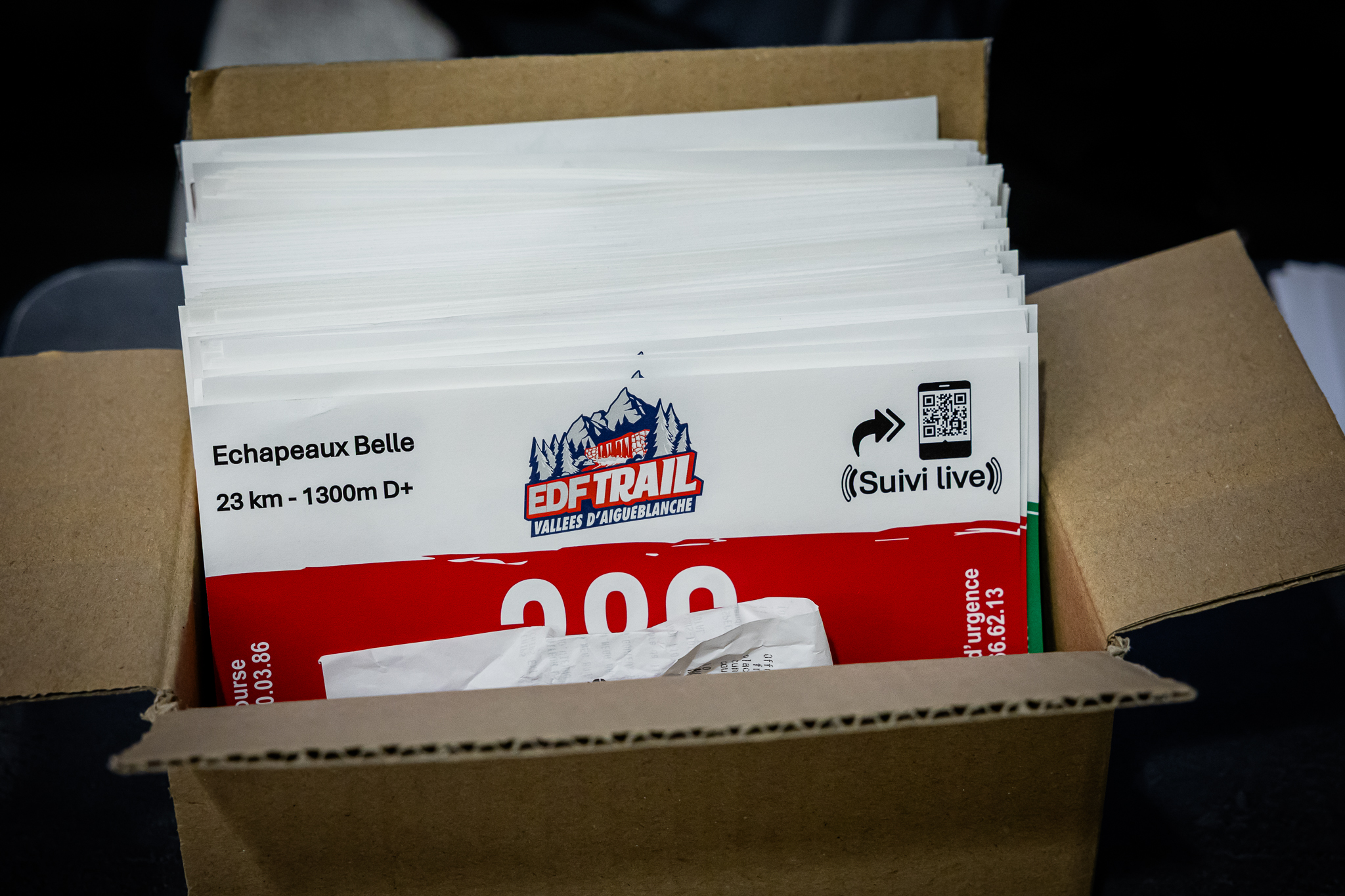 Le dossard doit être visible pendant la totalité de la course. Prévoir des épingles.